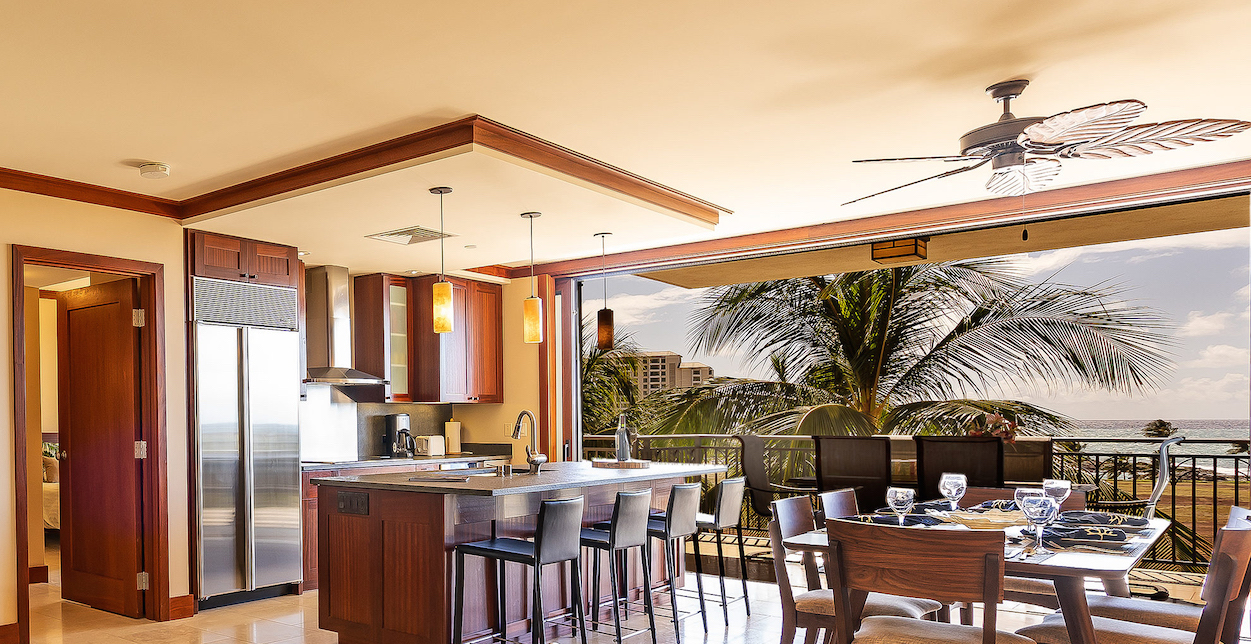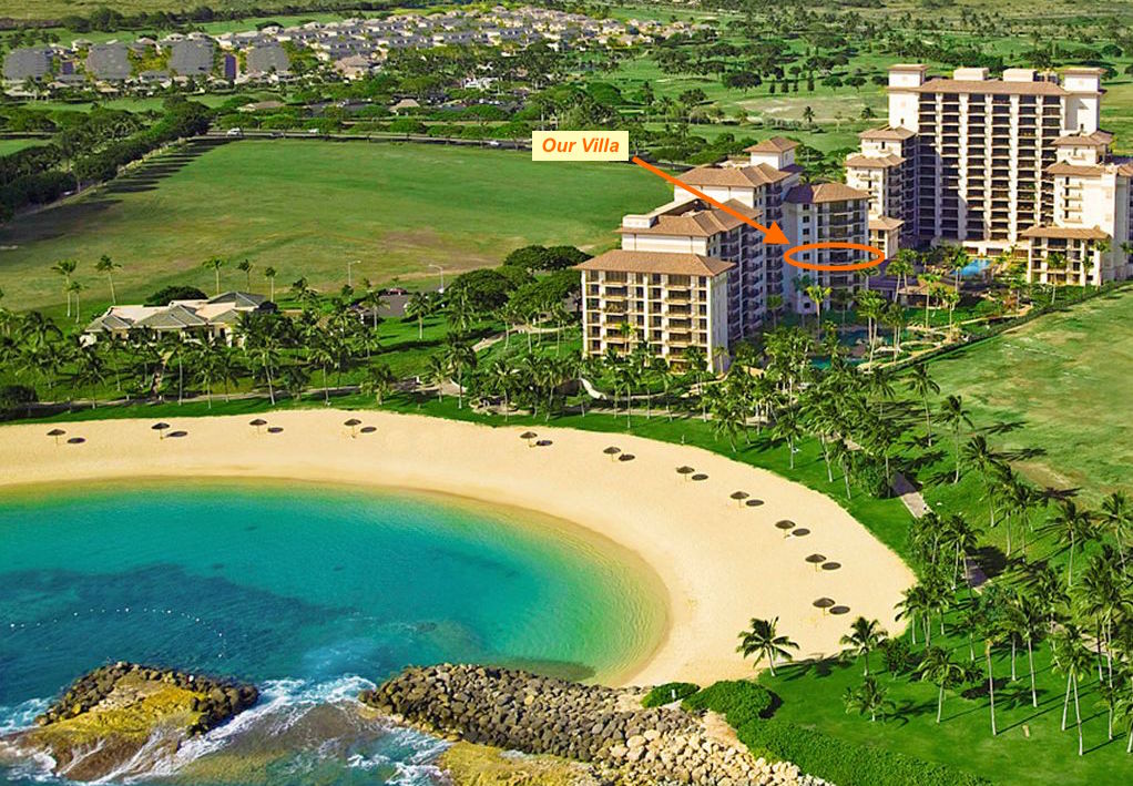 The Beach Tower is the tower closest to ocean, at Ko Olina’s beach lagoon 2.