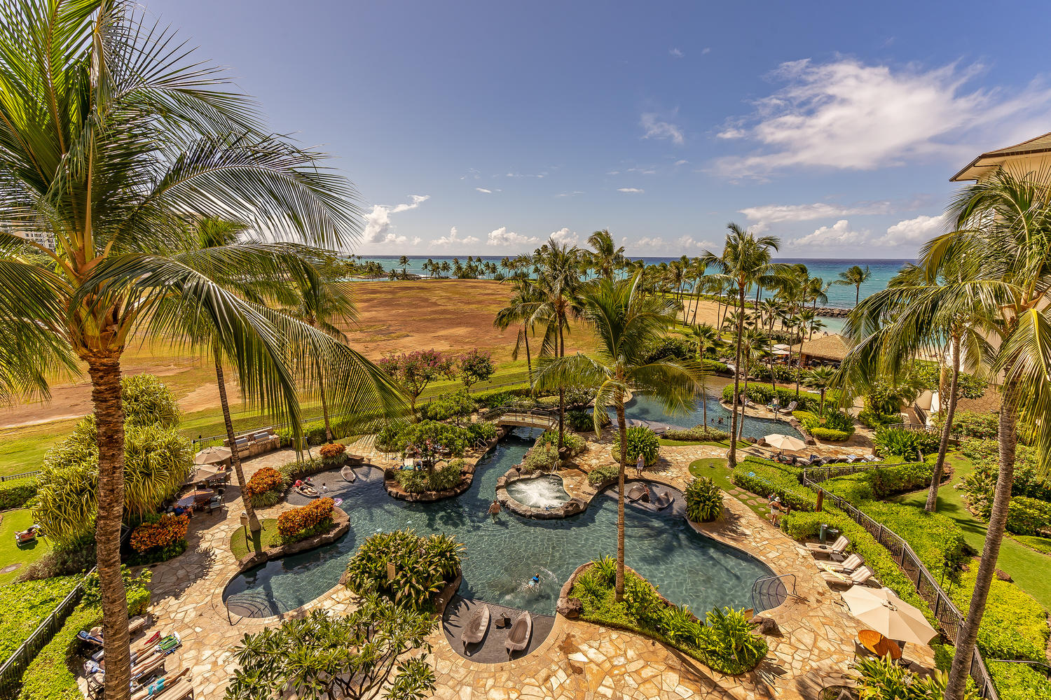 This 2 bedroom 2 bath Villa is located on the “Sunset Side” of the Beach Tower on the 6th floor. The Beach Tower is the closest tower the ocean, at Ko Olina’s second beach lagoon, Honu Lagoon.